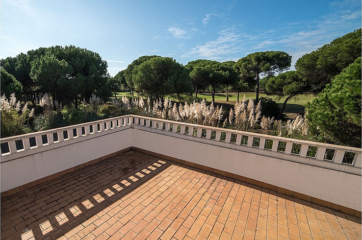 En la planta alta hay un dormitorio con cama de matrimonio y un baño en suite similar al baño en la planta baja y el acceso a la terraza con vista al campo de golf (hoyo 12).