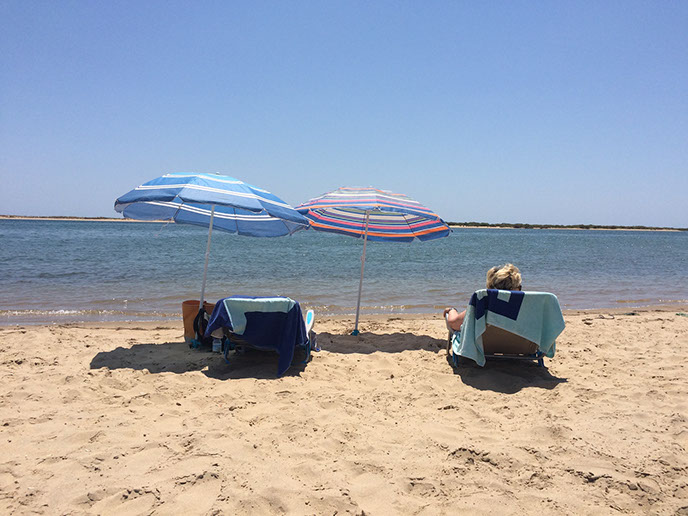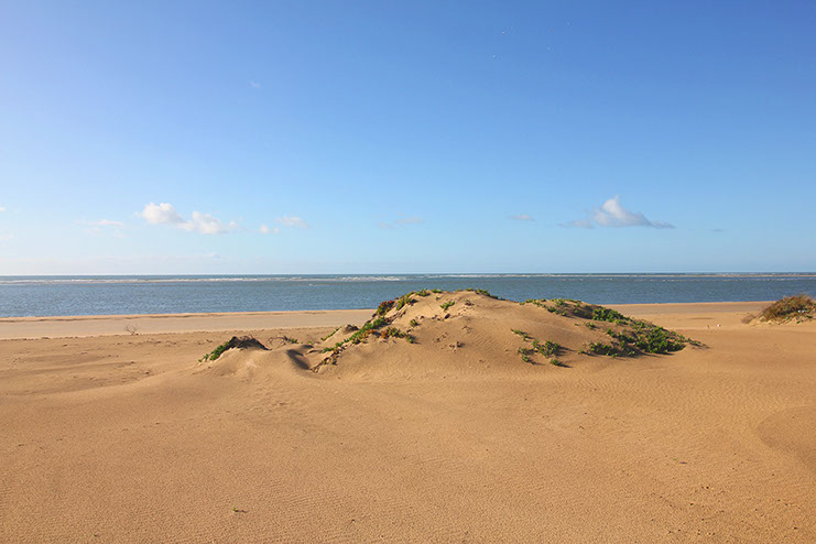 Der Sand-Strand vor unserer Haustür ist Naturschutzgebiet und insgesamt 25 km lang. Er reicht vom Yachthafen von El Rompido bis nach Punta Umbria. Der Sand-Strand ist teilweise mehrere hundert Meter breit, es bieten sich alle Formen von Wasser- und Strandsport an. Die Region ist ein El Dorado für Kite- und Windsurfer, da nachmittags und am Abend am Strand stets ausreichend Wind zum Surfen vorhanden ist (Einsetzen der Flut).