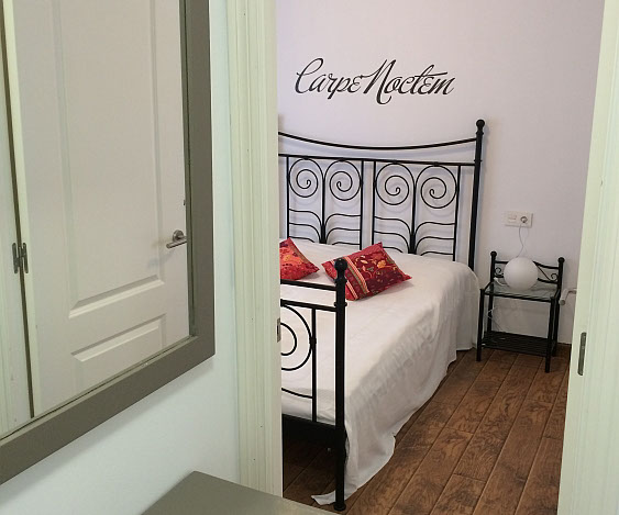 Eingangsbereich des Gästehauses mit Blick auf das Schlafzimmer mit Doppelbett